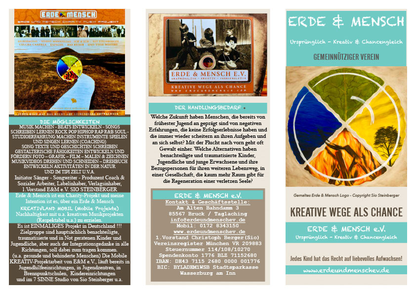 stellten vor dem Konzert, Ihre Vereine und die damit verbundene Arbeit vor. (siehe Webseiten) Höhepunkt war das Farbspieler – Unplugged – Konzert von Sänger und Songschreiber, sowie Produzent und sozialen Arbeiter Sio Steinberger, das mit Standing Ovations, des zahlreich erschienenen Publikums, am späteren Abend zu Ende ging. www.siosteinberger.de